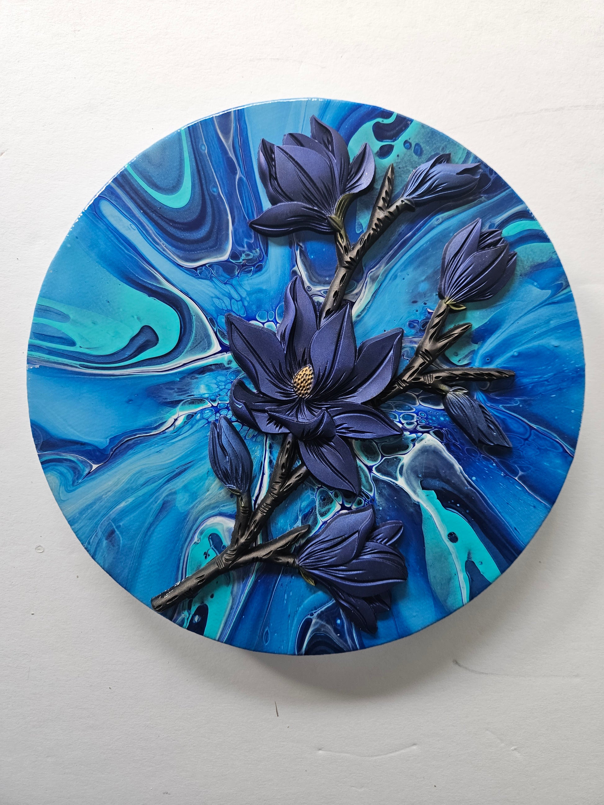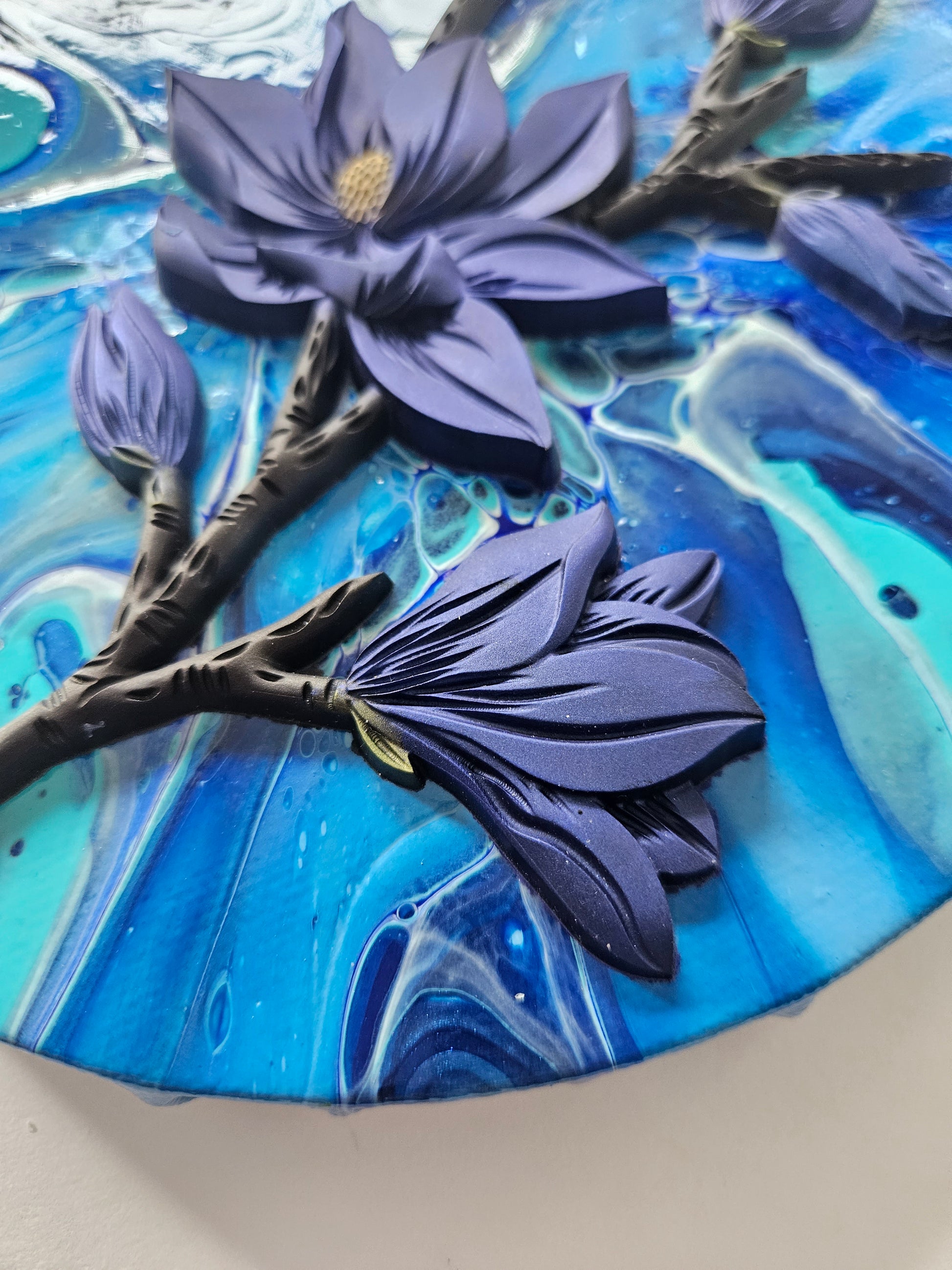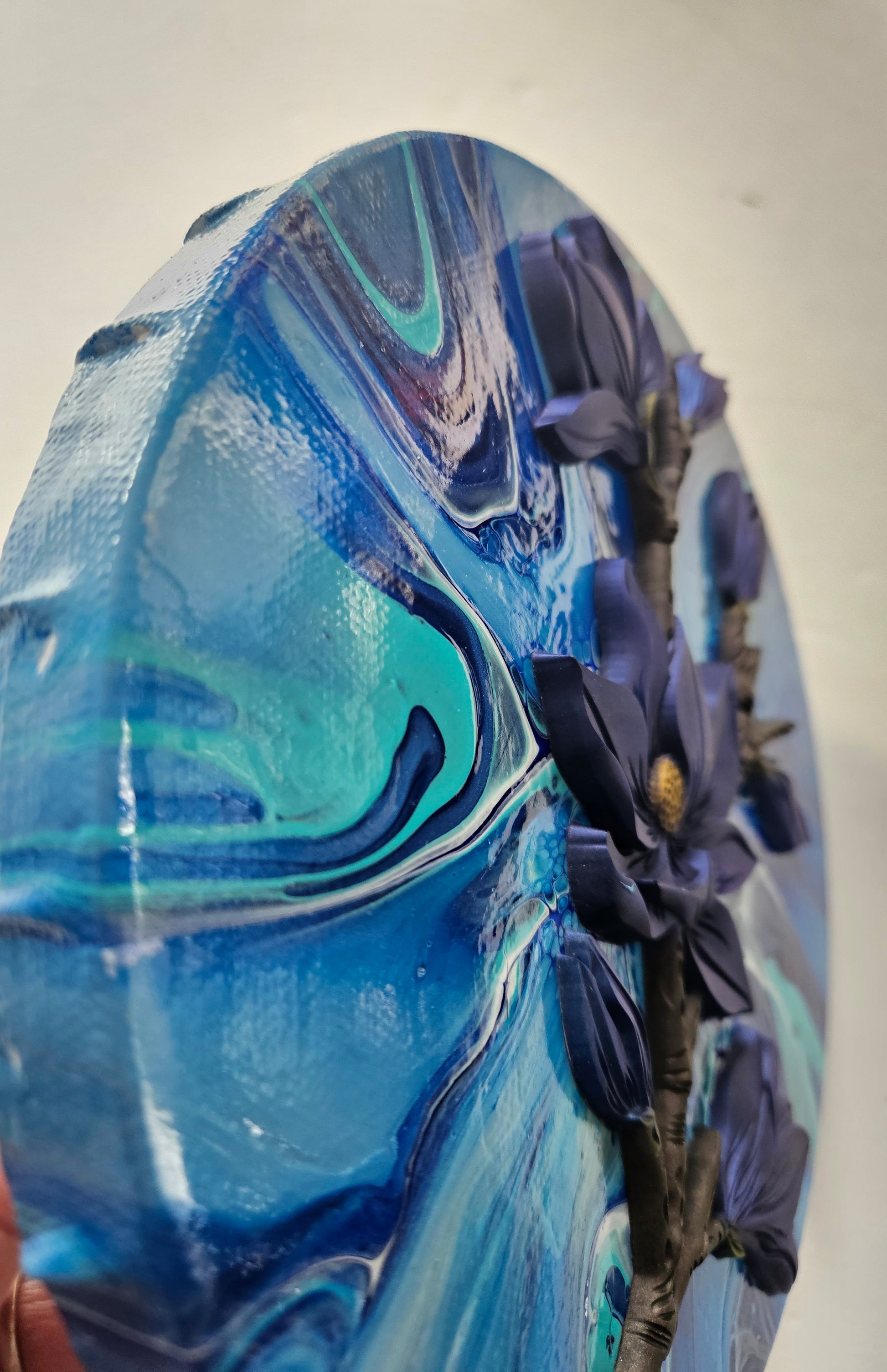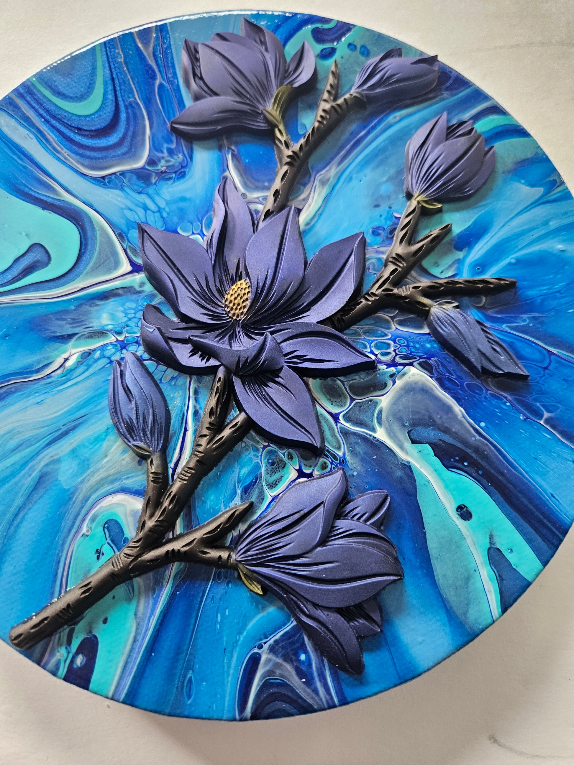 Our paintings are unique original art. They are created using a variety of fluid art techniques. We tend to use pigments in our work. Because the pigments give the paintings a lot of depth and movement that you can’t see in a photograph, we believe our work shows better in person than over the internet.