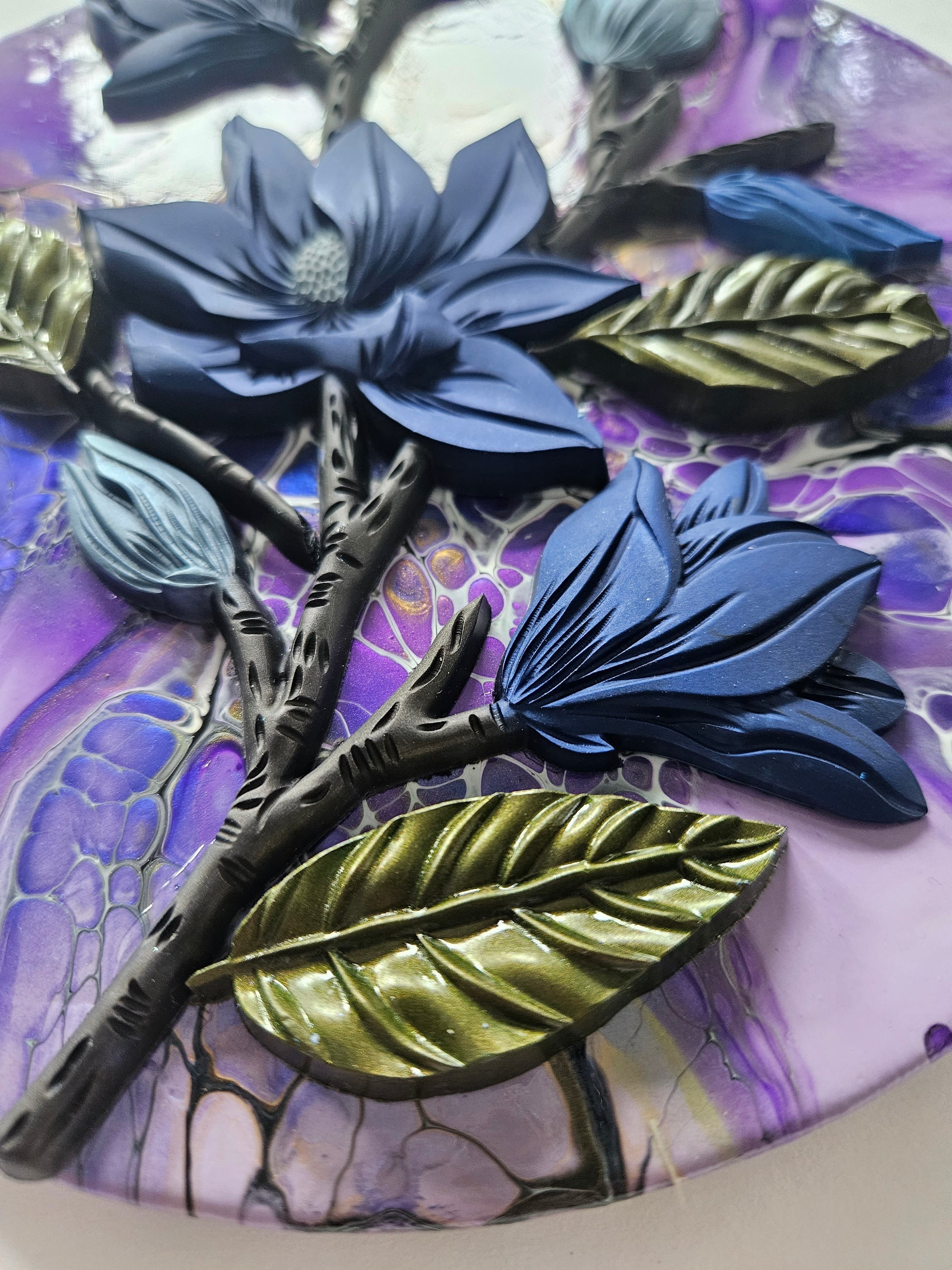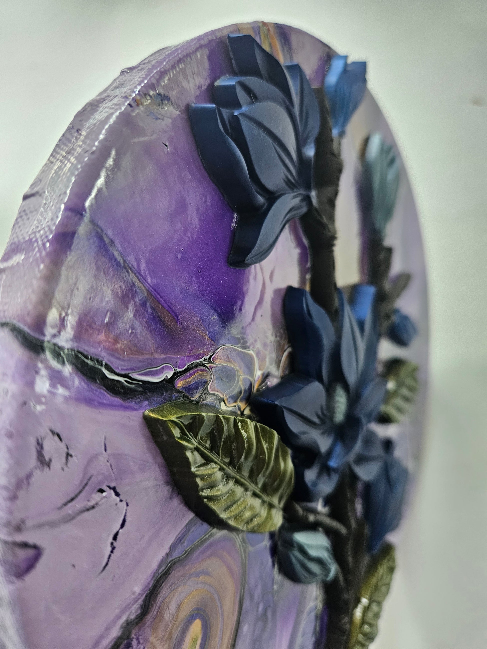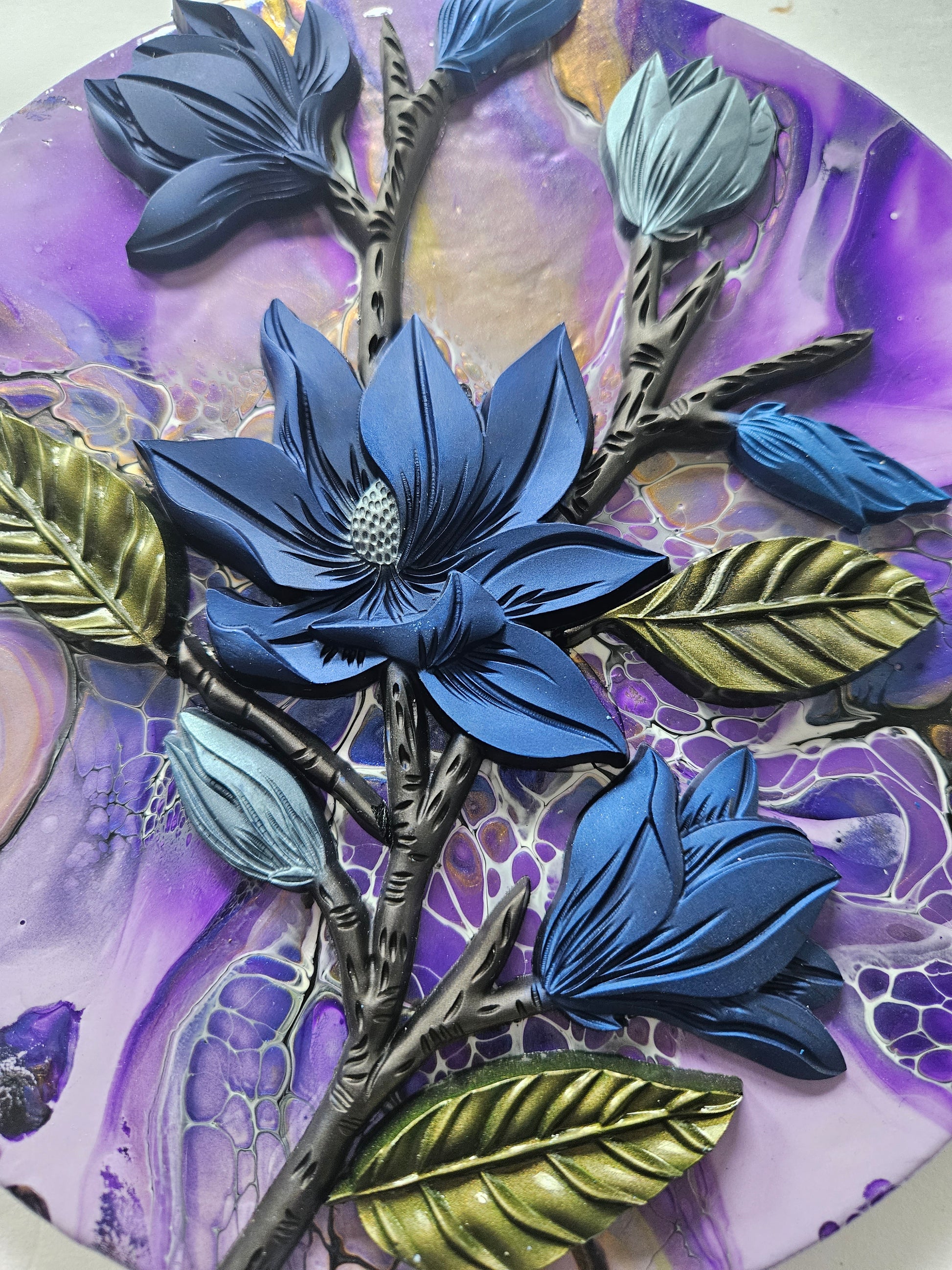 Our paintings are unique original art. They are created using a variety of fluid art techniques. We tend to use pigments in our work. Because the pigments give the paintings a lot of depth and movement that you can’t see in a photograph, we believe our work shows better in person than over the internet.